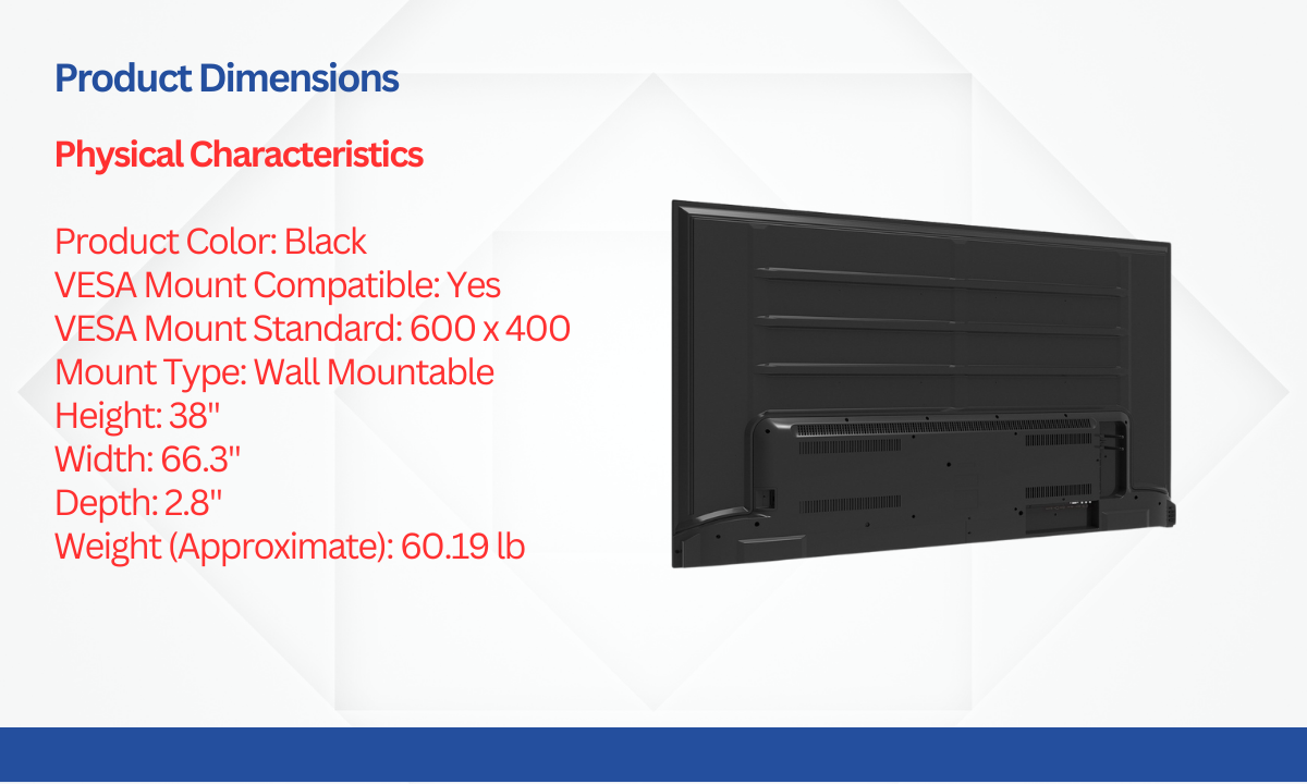 viewsonic cde7512 75" 4k uhd commercial display with vesp, wireless screen sharing